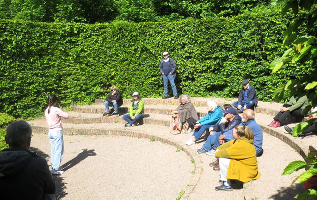 Im Laufe des Spaziergangs kamen neue, begeisterte Zuhörer dazu und der Spaziergang wurde zu einem festlichen Erlebnis im Zusammenspiel von musikalischem Kunstgenuss und Gartenkunst. Die Auswahl der Musikstücke für diese reizvolle, musikalische Wanderung lag in den Händen der jungen Musikerinnen und Musiker, die sie z.B. im Heckentheater, im Russischen Garten, an einem der Brunnen vortrugen.